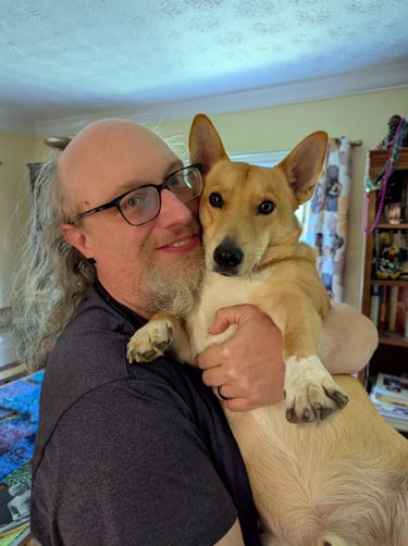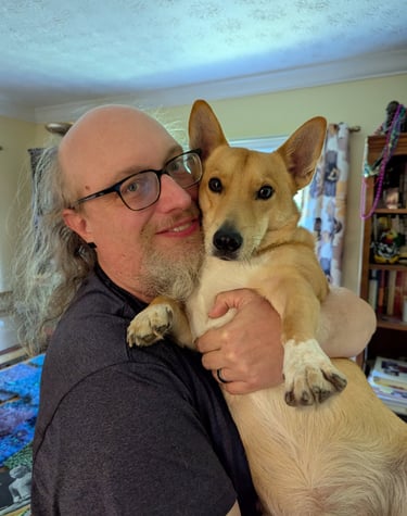 While Sherry and I have kids from previous marriages, our babies are our three dogs. This is our corgi Cheezit.